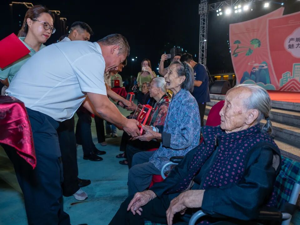 敬老宴席间,长者们笑容洋溢。他们既是南头昔日发展的建设者,也是城镇变迁的见证人。大家围坐一堂,既话敬老传统,也谈社区新貌。“以前这里还是个环境黑点,杂草长得比人都高。现在改建成这么漂亮的公园,我们多了散步、活动的好去处”,一位长者指着如今举办晚宴的将军文化公园感慨道,从城镇环境的改善到生活服务的提升,言语间充满自豪与欣慰。这场温情传承表明,敬老宴不仅是一座连通邻里、传递温暖的桥梁,更是一扇展现南头镇治理创新与民生温度的窗口,它见证了老龄事业的高质量发展,为“百千万工程”增添深厚的民生底色。