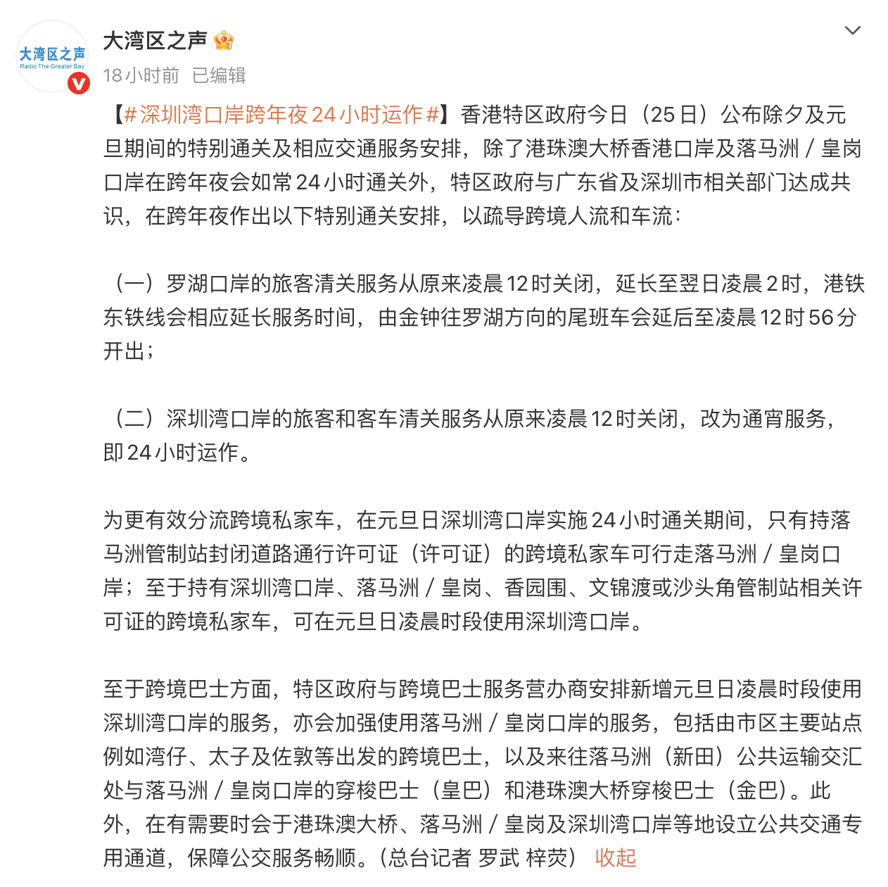 罗湖公路口岸: 延长通关至次日凌晨2时。