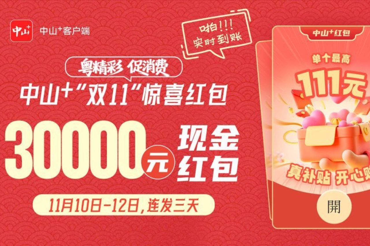 单个最高111元!“中山+”双11惊喜红包,即将连发3天!