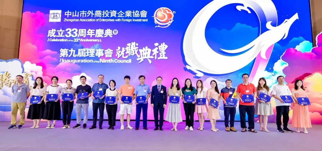 7月3日,中山市外商投资企业协会成立三十三周年庆典暨第九届理事会就职典礼在中山市利和希尔顿酒店举行。中国外商投资企业协会发来贺信,广东省商务厅副厅长、广东外商投资企业协会会长朱小军,香港特区政府驻粤经济贸易办事处副主任苏紫贤,中山市领导周作德、冯金怡等出席了庆典。